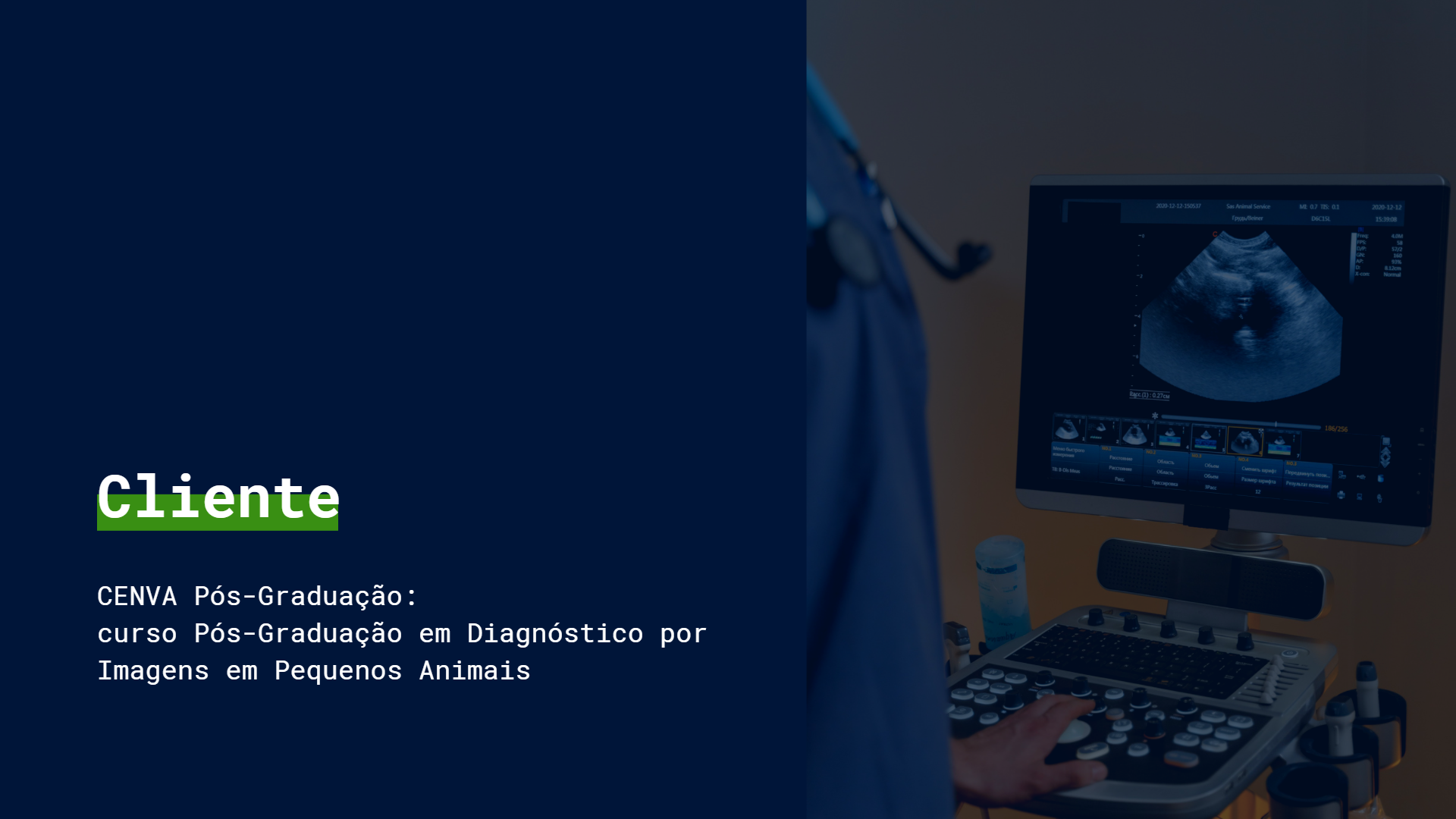 Produção do vídeo institucional para o curso de Pós-Graduação em Diagnóstico por Imagens em pequenos animais do CENVA Pós-Graduação.